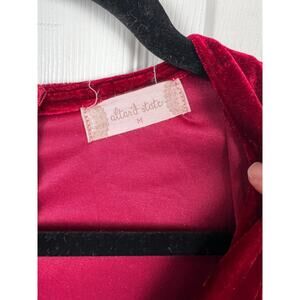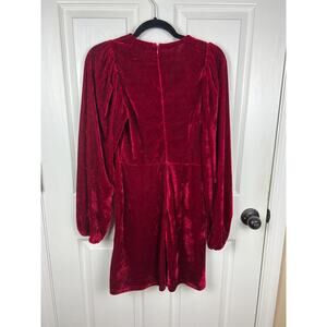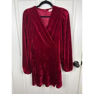 Altar’d State Red Vevlet Puff Balloon Long Sleeve Faux Wrap Dress Medium