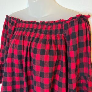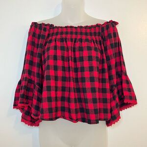 Altar’d State Red and Black Buffalo Plaid Off Shoulder Top Size Small