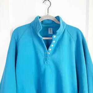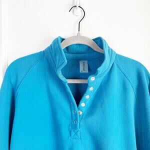 Altar’d State Revival Peak Balloon Sleeve Pullover Blue Notched Funnel Neck Size XL. Very good, preowned condition. Snap buttons on top quarter of pullover up to funnel neck. Oversized balloon sleeves. Comfy, soft inside lining. Polyester/Cotton/Spandex. Hand wash cold. Hang dry.