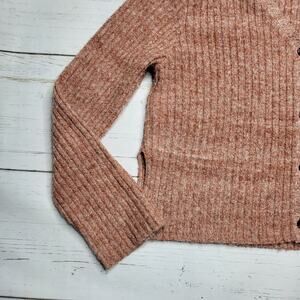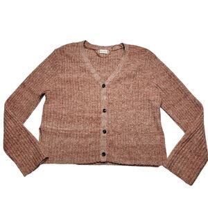 Altar’d State Ribbed Boxy Cropped Cardigan Sweater Button Rust Super Soft Small