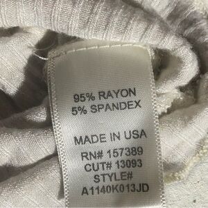 Elevate your wardrobe with this chic cream ribbed top. Perfect for any occasion, this top offers both style and comfort. No noticeable damage. Very stretchy. Made in the U.S.A. Mannequin is a size 6. Five star seller with quick shipping! ✈️