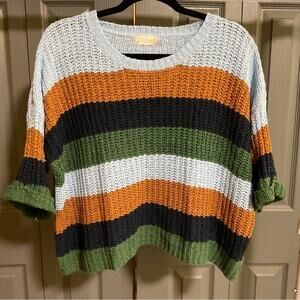 Altar’d State Ribbon Knit Women’s XS- Small Sweater Striped Navy Blue Tan
