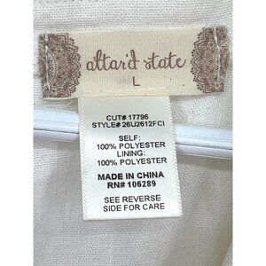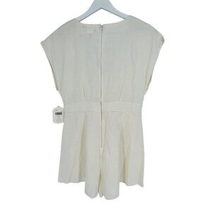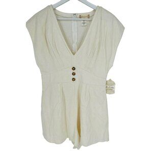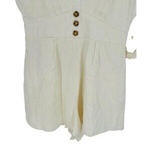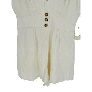 Altar'd State Romper Shorts Women's Size L Ivory Cream Deep V-Neck Button Detail Cap Sleeve Pleat Detail Lined Back Zip Linen Look to Fabric