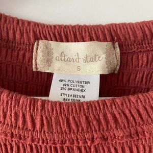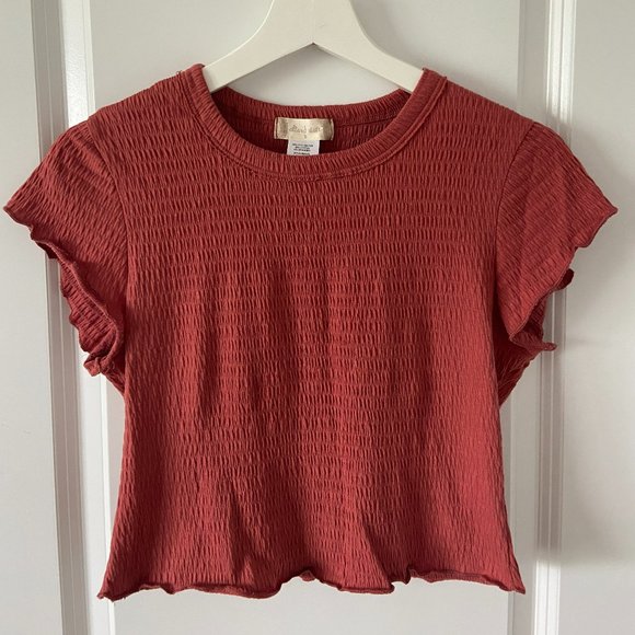 Rusty Red baby tee from Altar'd State. Hits at about belly button level. Size S. Worn twice. Lettuce/ruffle trim.