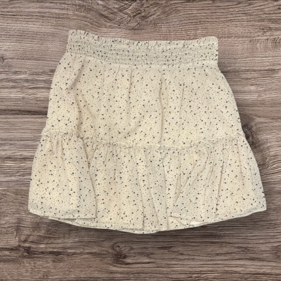 Altar'd State Ruffed Cream Mini Skirt w/ Black Star Speckles & Elastic Waistband