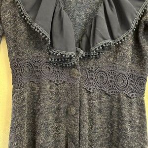 Altar’d State Ruffle Button Down Blue Sweater Cardigan Dress Small Side Pockets