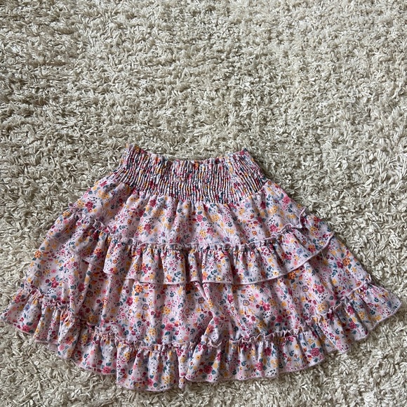 Super cute ruffle mini skirt with pretty floral pattern. Elastic waist looks cute and is very stretchy!!