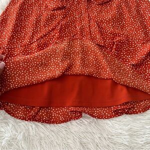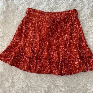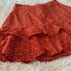 Altard State Ruffle Mini Skirt - Burnt Red Polka Dot - Size Small EUC