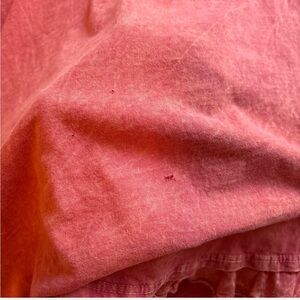 Altar'd state ruffle hem shirt. Kind of a light wash red. Some small holes towards the bottom of the shirt, but not noticeable when on.