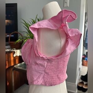 Chic and stylish pink ruffled top perfect for any occasion. Elevate your wardrobe with this elegant piece.