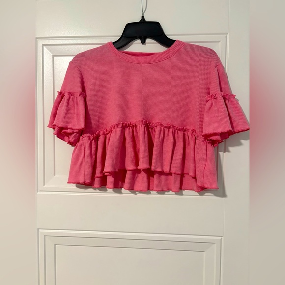 Vibrant pink cute altars state top with playful ruffles. Perfect for adding flair to any outfit. Size xxs. Worn a couple of times but perfect condition still!