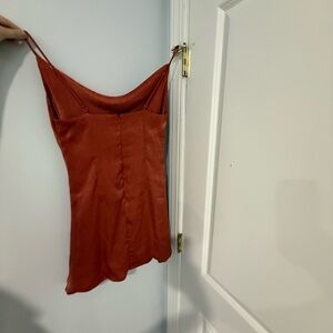 Chic mini dress in a rich rust color. Sleek and stylish design. Perfect for any occasion.