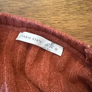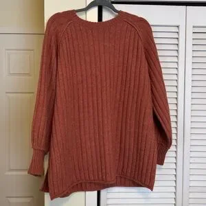 Chic ribbed design. Warm rust color. Perfect for layering.