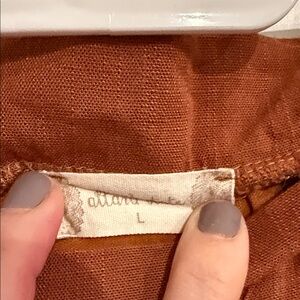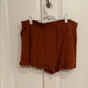 Chic rust skort with ruffle detail. Perfect for casual outings.