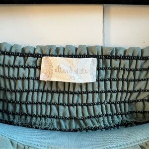 Altar’d State Sage Green Smocked Peasant Crop Top XS – Long Sleeve Puff Blouse