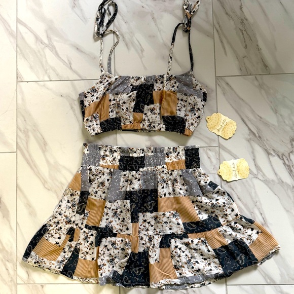 Super cute 2 piece set from Altar’d State. NWT, never worn. Top is a size small and bottom is a medium. Top fits a variety of sizes since it has adjustable tie straps. Please let me know if you would like to purchase separately.