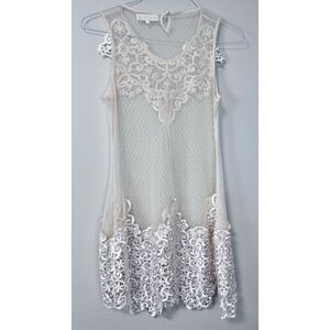 Altar’d State Sheer Cream Lace Mini Dress Size Small