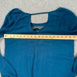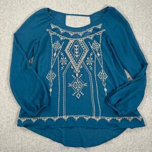 Altar'd State Sheer Embroidered Peasant Blouse Women's Medium Long Sleeve Blue