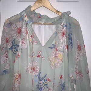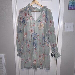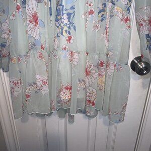 Altar'd State Sheer Mint Green Floral Cottegecore Babydoll Tiered Dress Medium