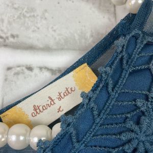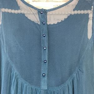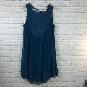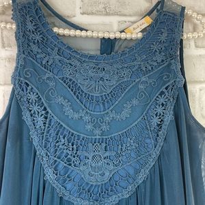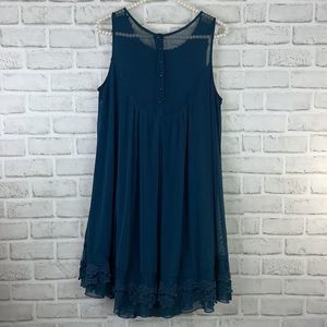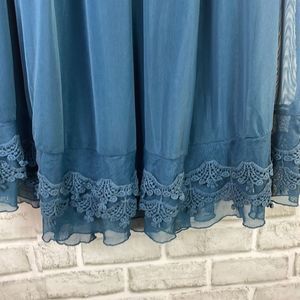 Altar’d State Sheer Sleeveless Flowing Dress Lace Detailing Blue Size Large