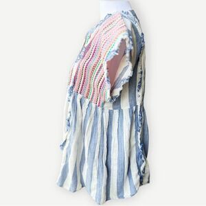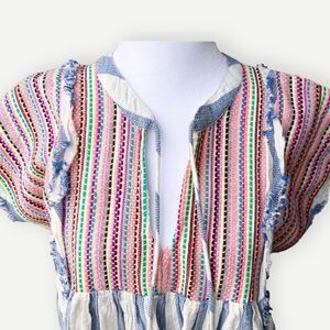 Altar’d State Short Sleeve Colorful Flowy Boho Tassel Striped Top. Medium.