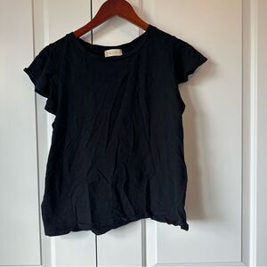 Altar'd State Size L Short Sleeve Ruffle Black Tee