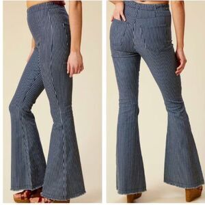 Altar’d State Size Small Pinstriped Flare Bellbottom Pull-on Jeans White & Blue