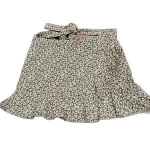 Altar'd State Skirt Ruffle bottom Tie Waist Olive and White Size Large