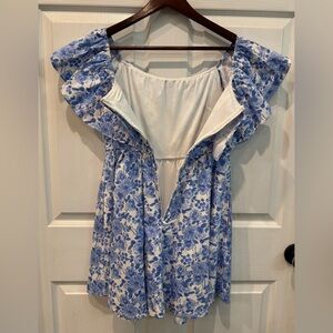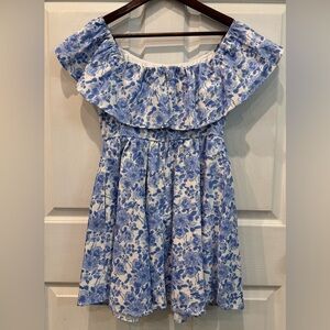 Altar’d State Slash Neck Floral Blue White Mini Dress Women Size Medium