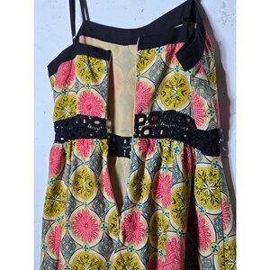 multicolor colorful lined print pattern medallion sleeveless tank top spaghetti strap summer spring bright vibrant lace feminine dainty festival date night going out sheer see through short mini homecoming prom dance Boho Bohemian Hippie hippy y2k 2000s retro 90s baby doll