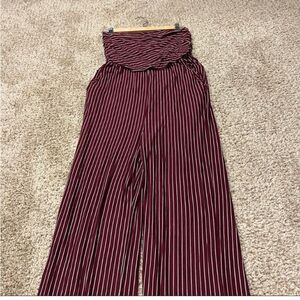 Altar'd State maroon and white striped boho sleeveless jumpsuit.