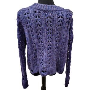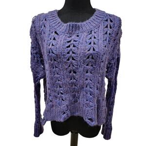 Altar'd State Small Loose Knit Crochet Sweater Gold Weaved Boho Chic Romantic