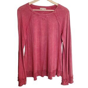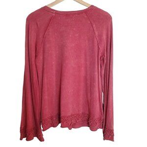 Altar'd State Small red Bohemian Top Blouse Peasant cottagecore Lace trim