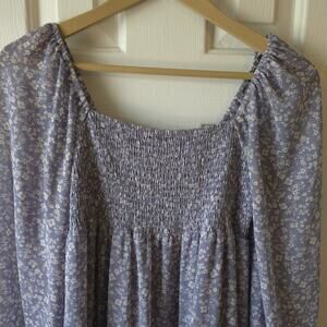 Altard State Smocked Babydoll Dress Lavender Floral Boho Peasant Size Small LS
