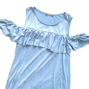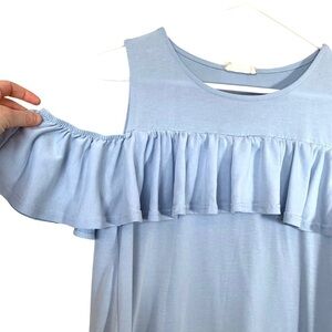 Altar’d State Solid Powder Blue Cold Shoulder Ruffled Shift Dress Small