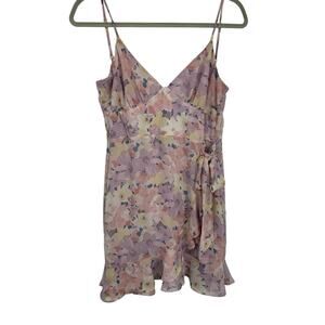 Altar'd State Spaghetti Strap Floral Chiffon Dress Size Large Ruffle Mini Retro