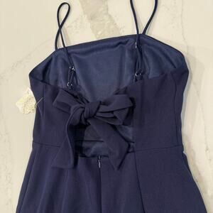 Altar’d State Square Neck Tie Back Ruffle Hem Mini Dress Womens Small Navy Lined