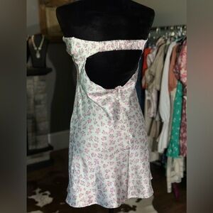 BRAND NEW NEVER BEEN WORN! Beautiful strapless floral dress with stretchy band in the back and zipper. Size L