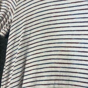 This relaxed t-shirt from Altar'd State features a charming ruffled hem and a classic short sleeve design. The alternating blue and red stripes add a touch of elegance to this casual top, making it perfect for everyday wear.