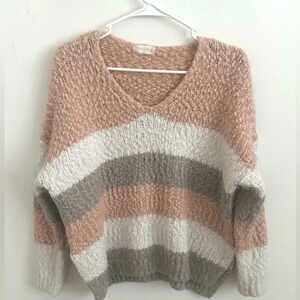Altar’d State Sweater strips white/cream S/M long sleeve pullover Sherpa