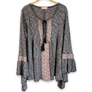 Altar'd State Sz: M Boho Style Blouse Peasant Tunic Shark Hem Black White