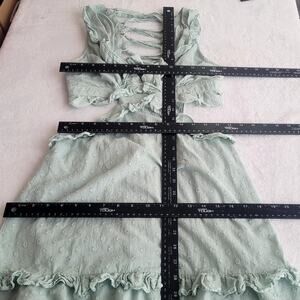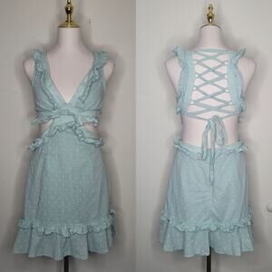 Altar'd State Sz M Mint Green Vilette Dress Boho Back Lace Up Swiss Dots Ruffles