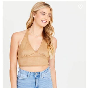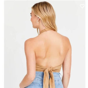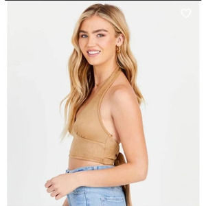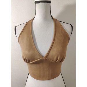 Altar'd State Tan Faux Suede Halter Tie Back Pointe Plunge V-neck Cropped Top Size L