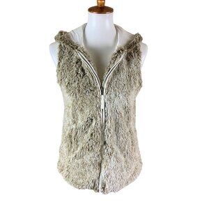 Altar’d State Taupe Faux Fur Zip Up Hooded Vest Soft Plush Layering Piece Small