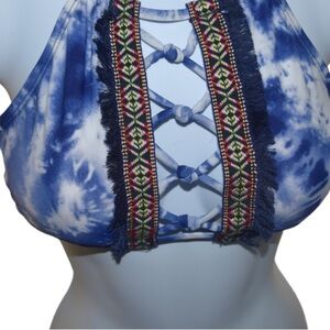Altar’d State Tie Dye Hi Neck Halter Swim Top NWT Fringe Size Small