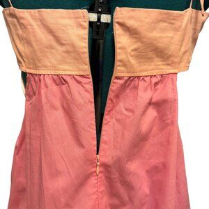 Sunburst maxi dress in vibrant Pinks and Oranges with cut out sides and tie shoulder straps