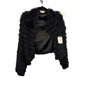 Altard State Tiered Shaggy Black Open Jacket Size Small