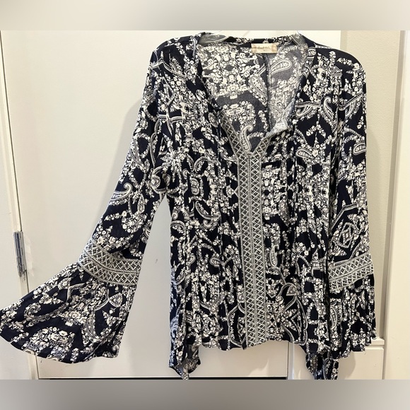 Flowy Navy Top Size Medium Long sleeve