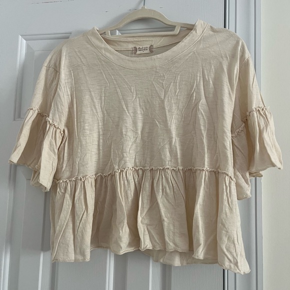 Elevate your style with this elegant cream ruffled top. Perfect for any occasion.