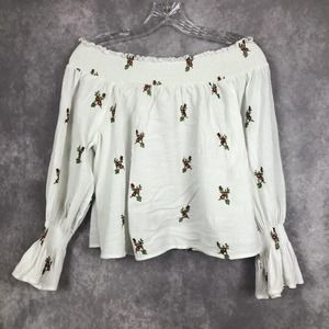 Altar’d State Top Boho Floral Embroidered Off Shoulder Peasant Blouse Cropped Size Medium